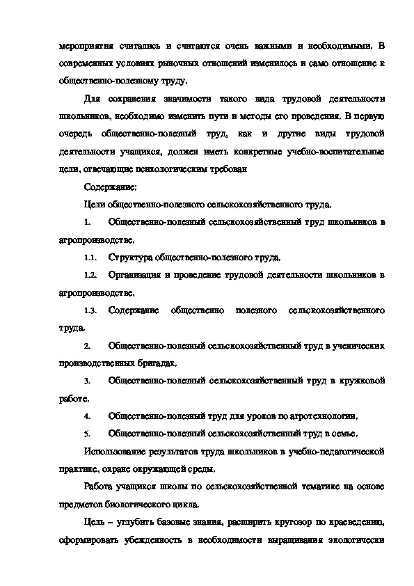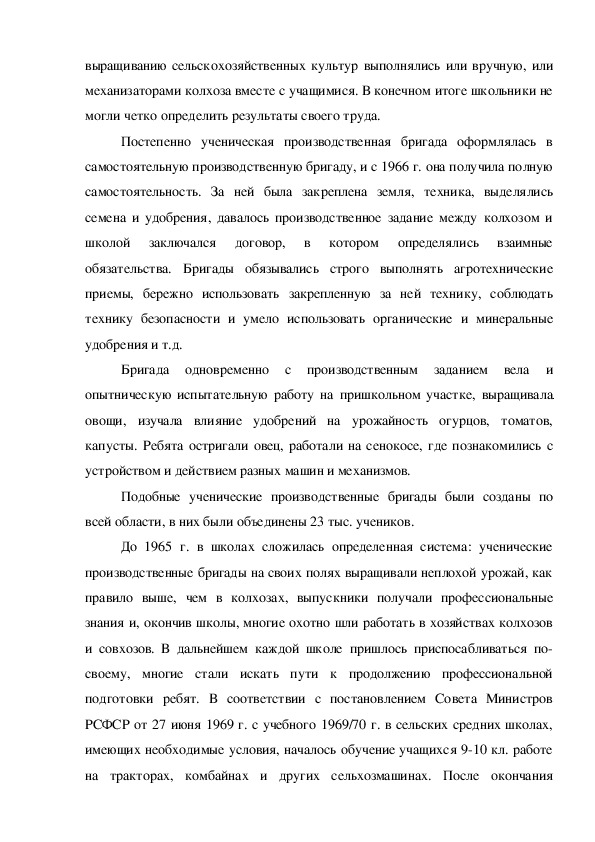 нового отношения к сельскохозяйственному труду в школе. Специалисты