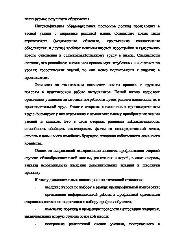 1.1 Организация предпрофильного обучения как особенности агрошколы