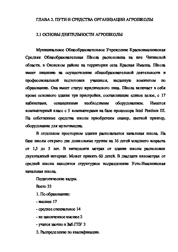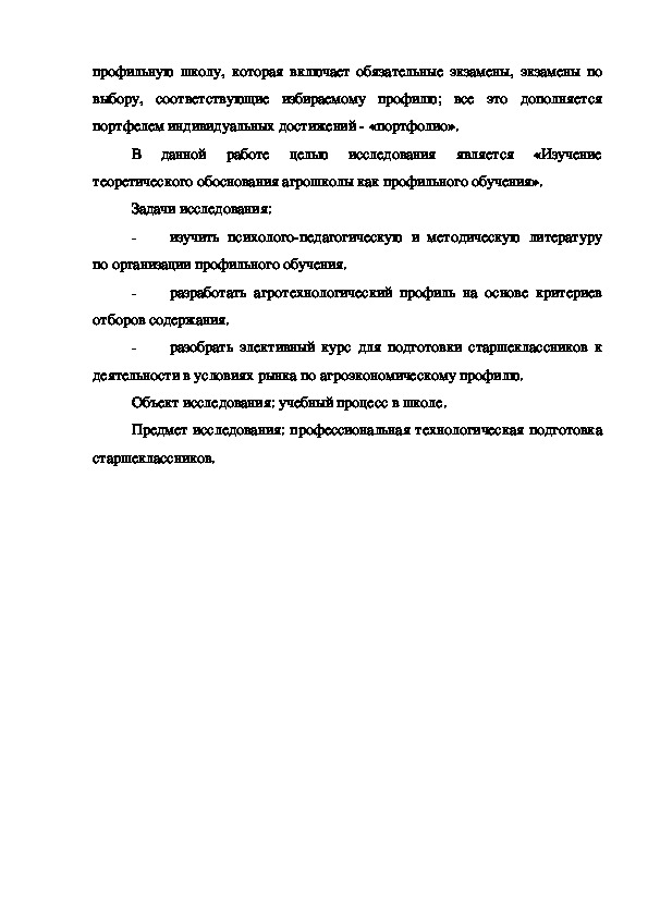 старшеклассников.ГЛАВА 1. ТЕОРЕТИЧЕСКОЕ ОБОСНОВАНИЕ АГРОШКОЛЫ КАК