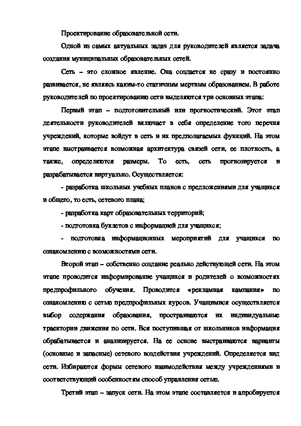 2.2 Проектирование профильного обучения в условиях сельской школы
