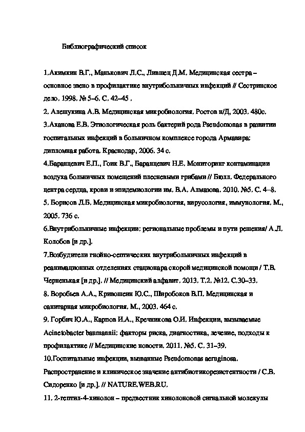 40. Алешукина А.В. Медицинская микробиология. Ростов н/Д, 2003. 480с.