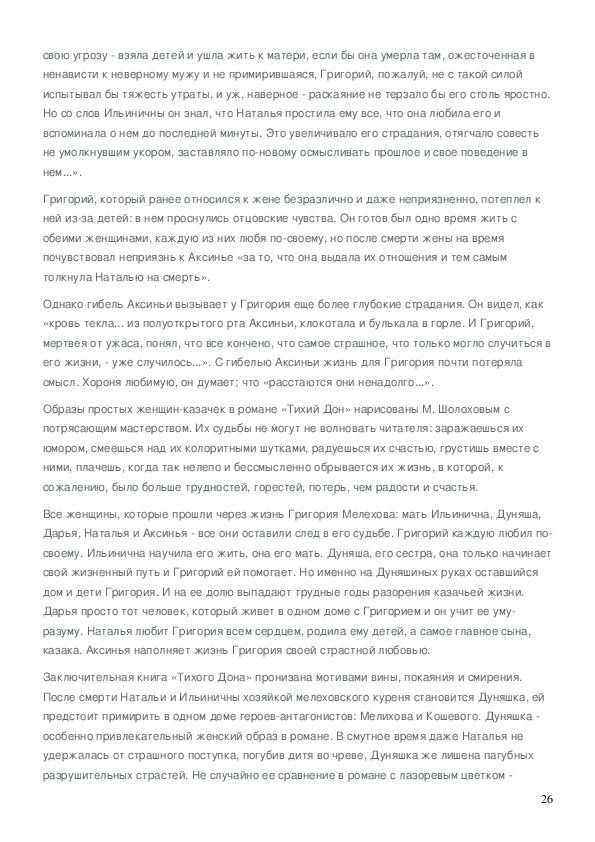 М.Шолохова «Тихий Дон» с точки зрения концепции женственности и связи с