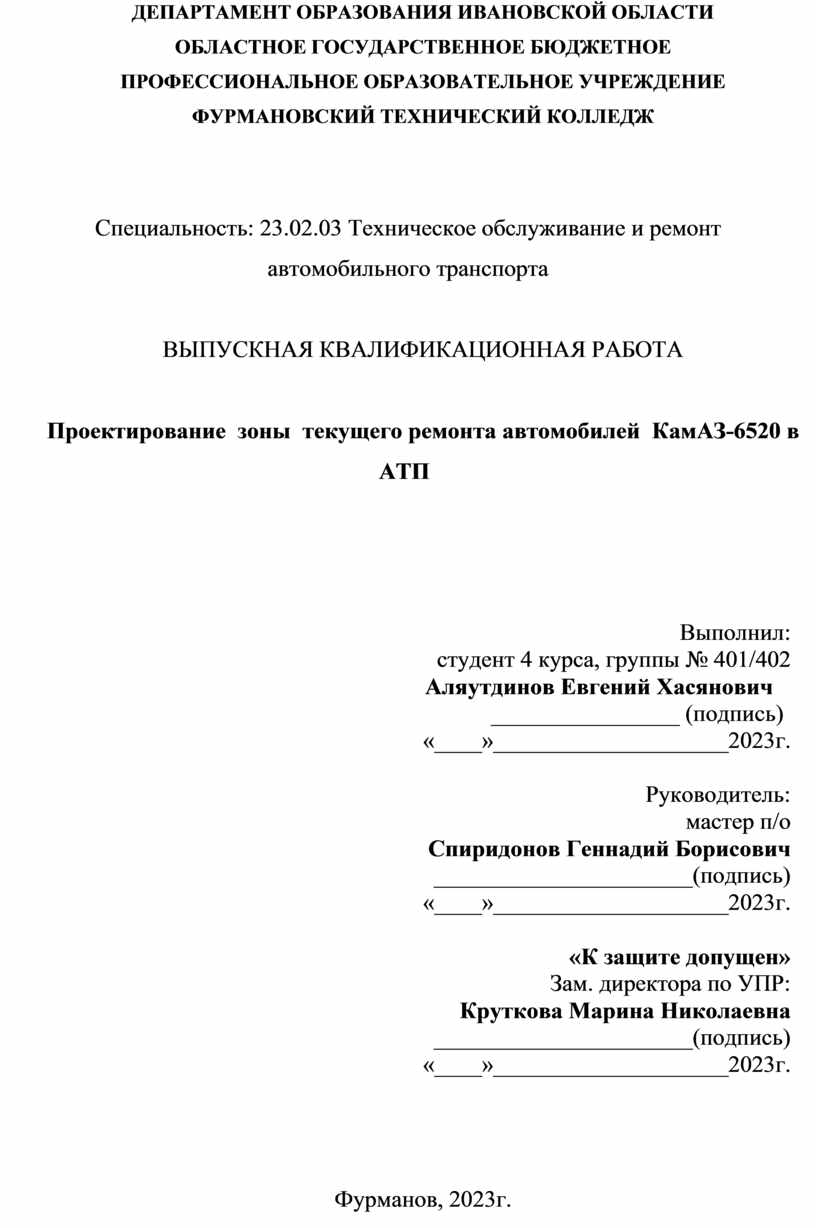 «К защите допущен» Зам. директора по УПР: Круткова Марина Николаевна ______________________(подпись) «____»____________________2023г. |