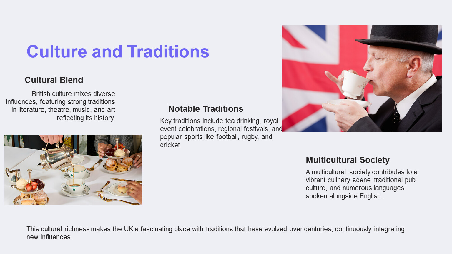 This cultural richness makes the UK a fascinating place with traditions that have evolved over centuries, continuously integrating new influences.