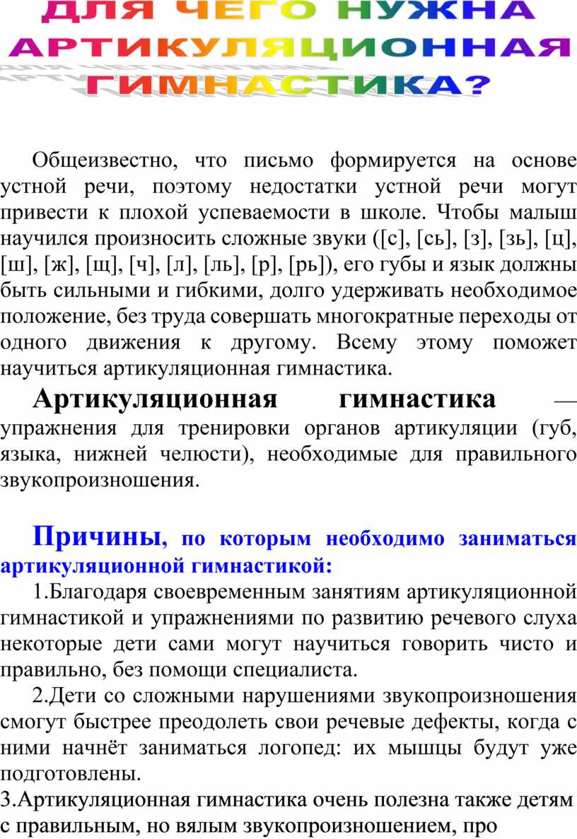 Причины, по которым необходимо заниматься артикуляционной гимнастикой: