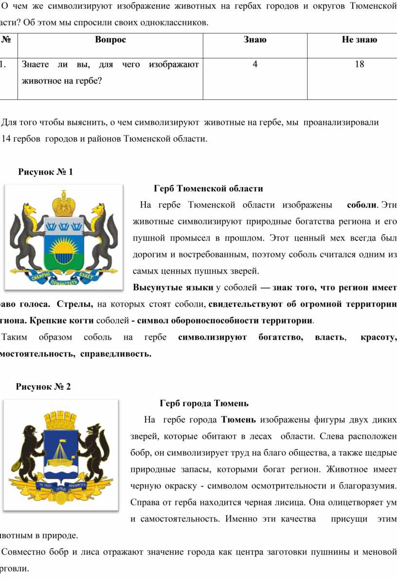 О чем же символизируют изображение животных на гербах городов и округов Тюменской области? Об этом мы спросили своих одноклассников.