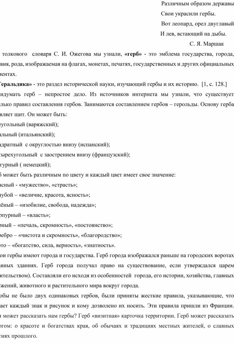 «визитная» карточка территории. Герб может рассказать о многом: о красоте и