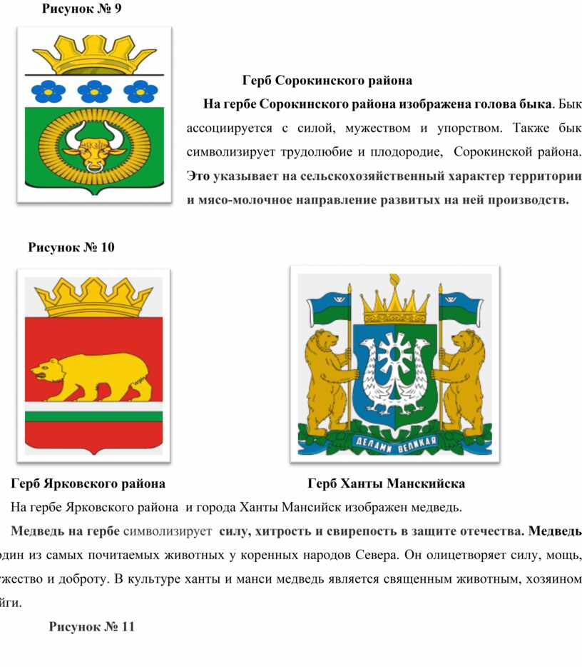 На гербе Ярковского района и города Ханты Мансийск изображен медведь.