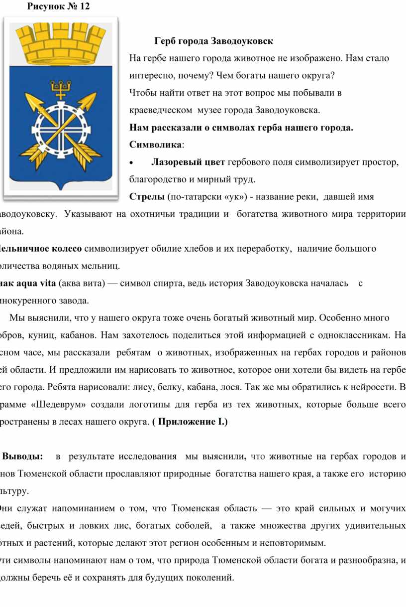 Выводы: в результате исследования мы выяснили, что животные на гербах городов и районов Тюменской области прославляют природные богатства нашего края, а также его историю и культуру.