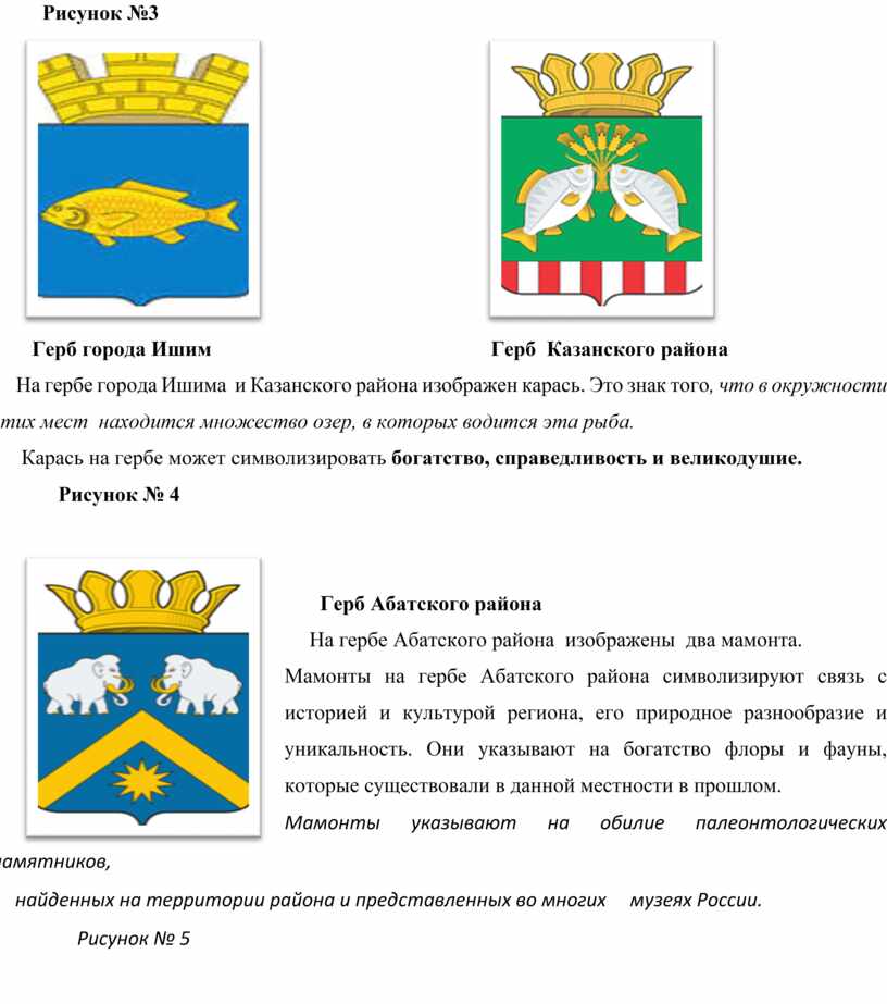 На гербе города Ишима и Казанского района изображен карась. Это знак того, что в окружности этих мест находится множество озер, в которых водится эта рыба.
