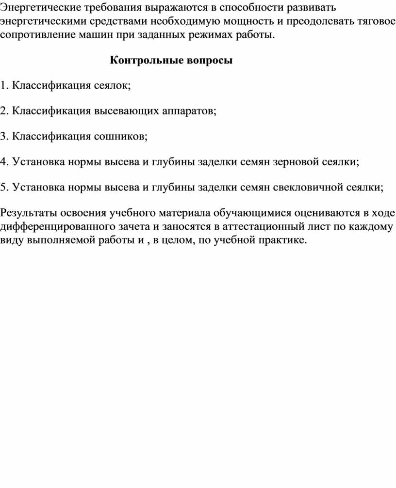 Машинно-тракторные агрегаты должны соответствовать необходимым агротехническим, энергетическим, техническим, технико-экономическим, эргономическим и другим требованиям.