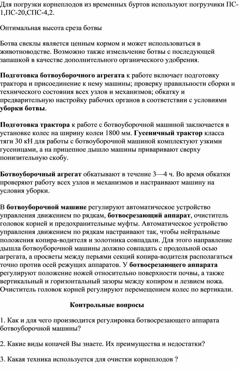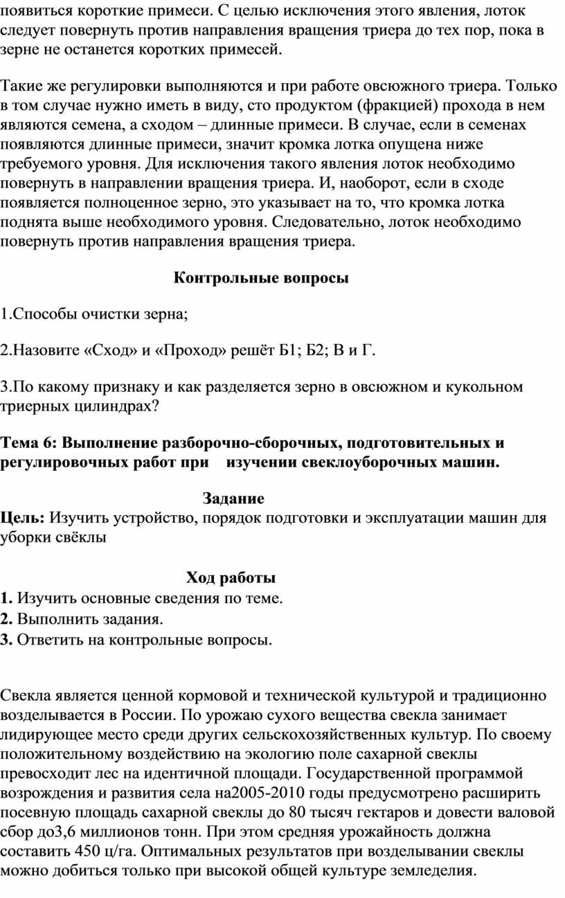 6. Выполнение разборочно-сборочных, подготовительных и регулировочных работ при изучении свеклоуборочных машин. . |
