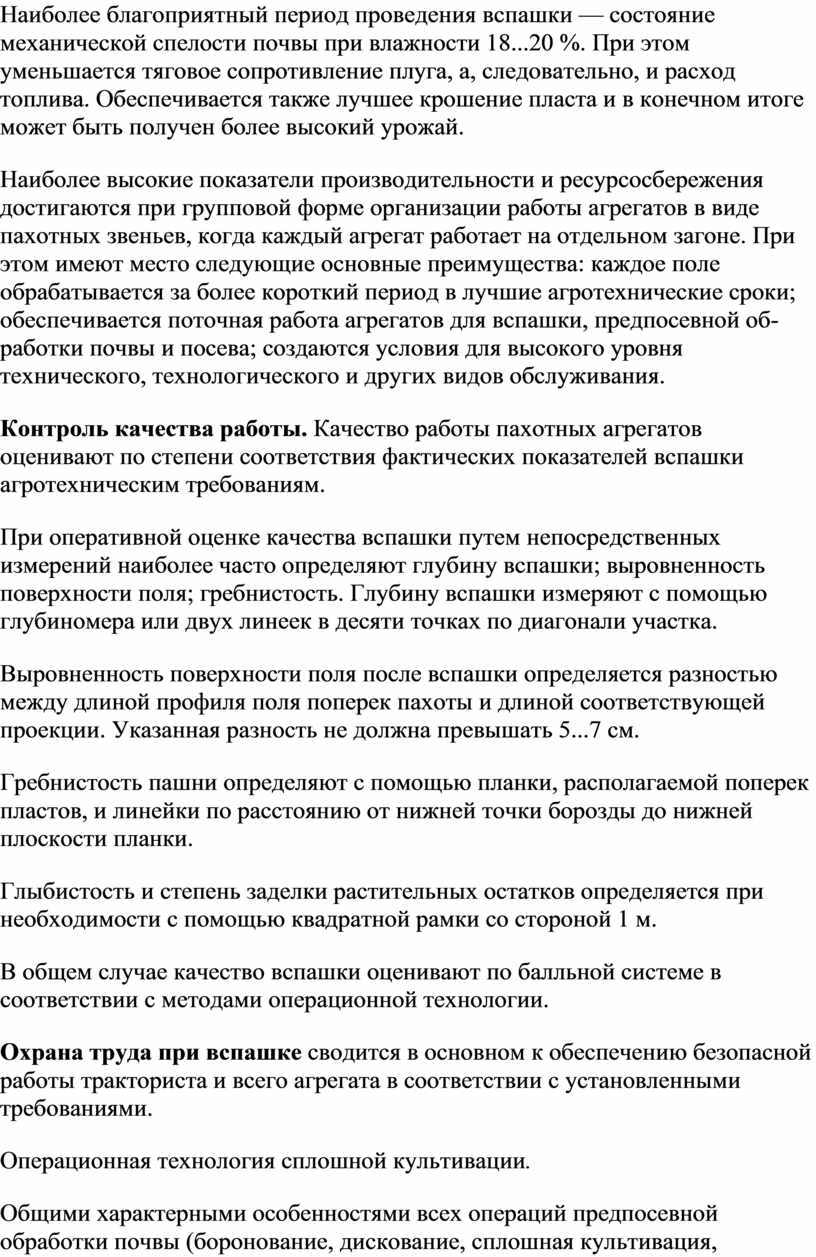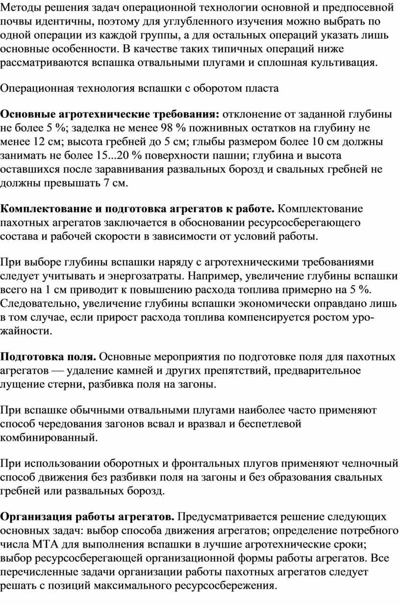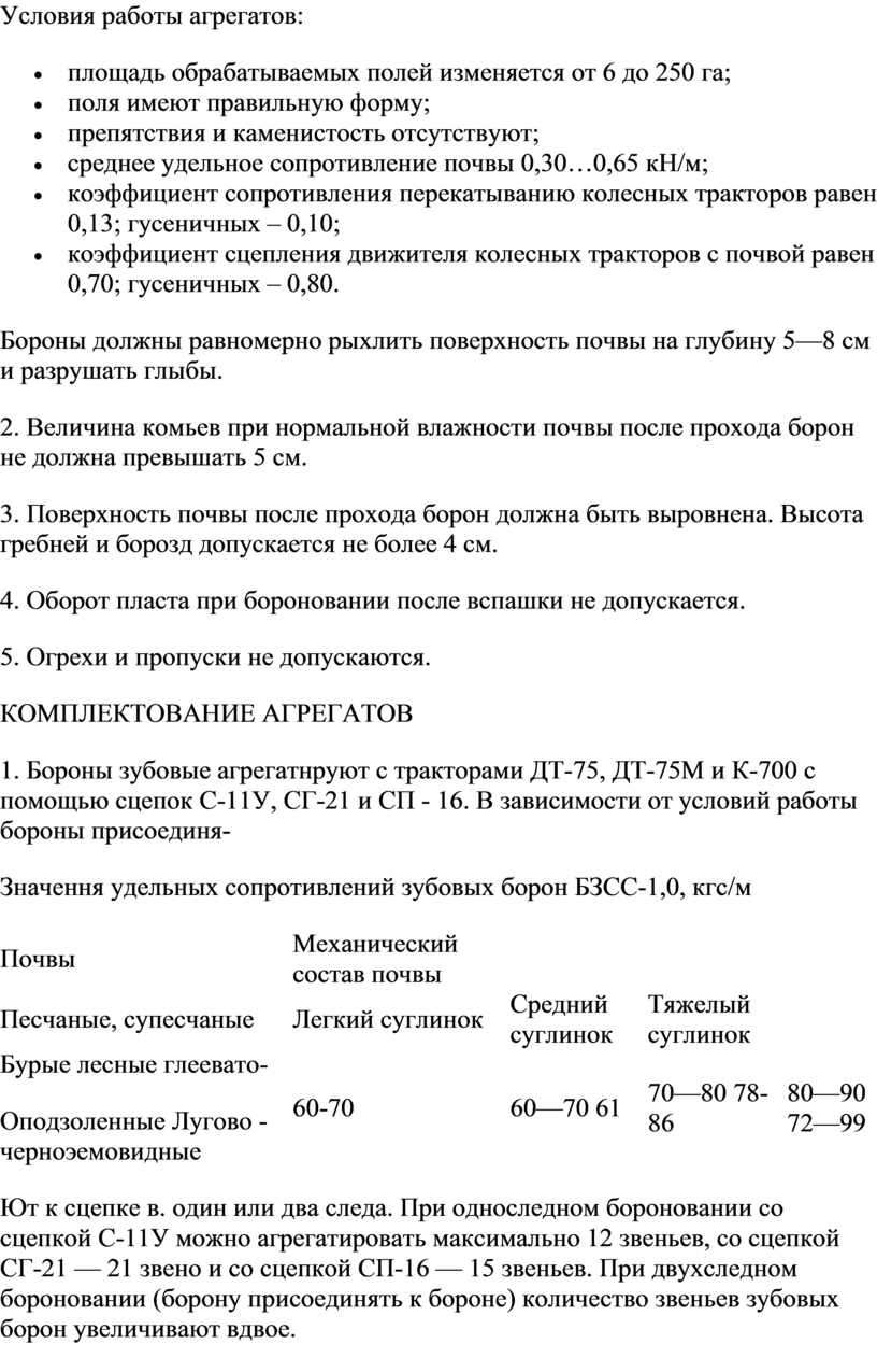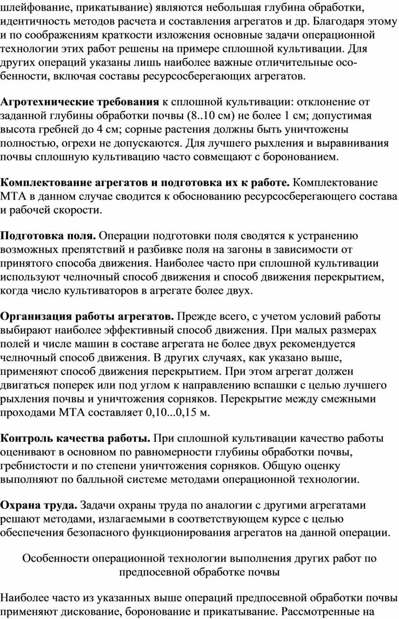 Агротехнические требования предусматривают качество выполнения технологических операций. Они зависят от условий работы, типа рабочих машин, энергетических средств, режима работы агрегата.