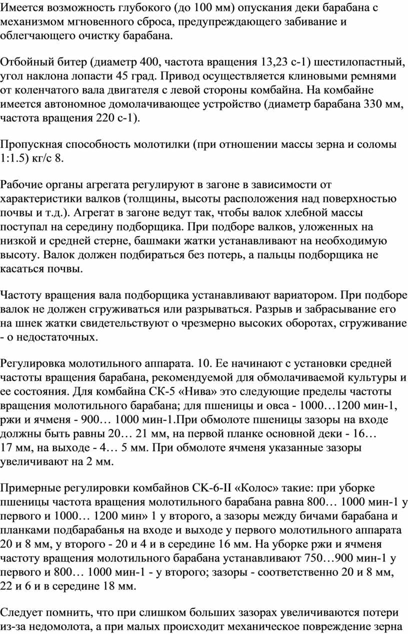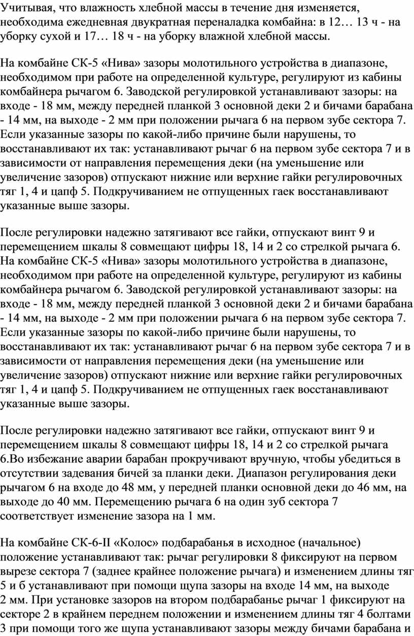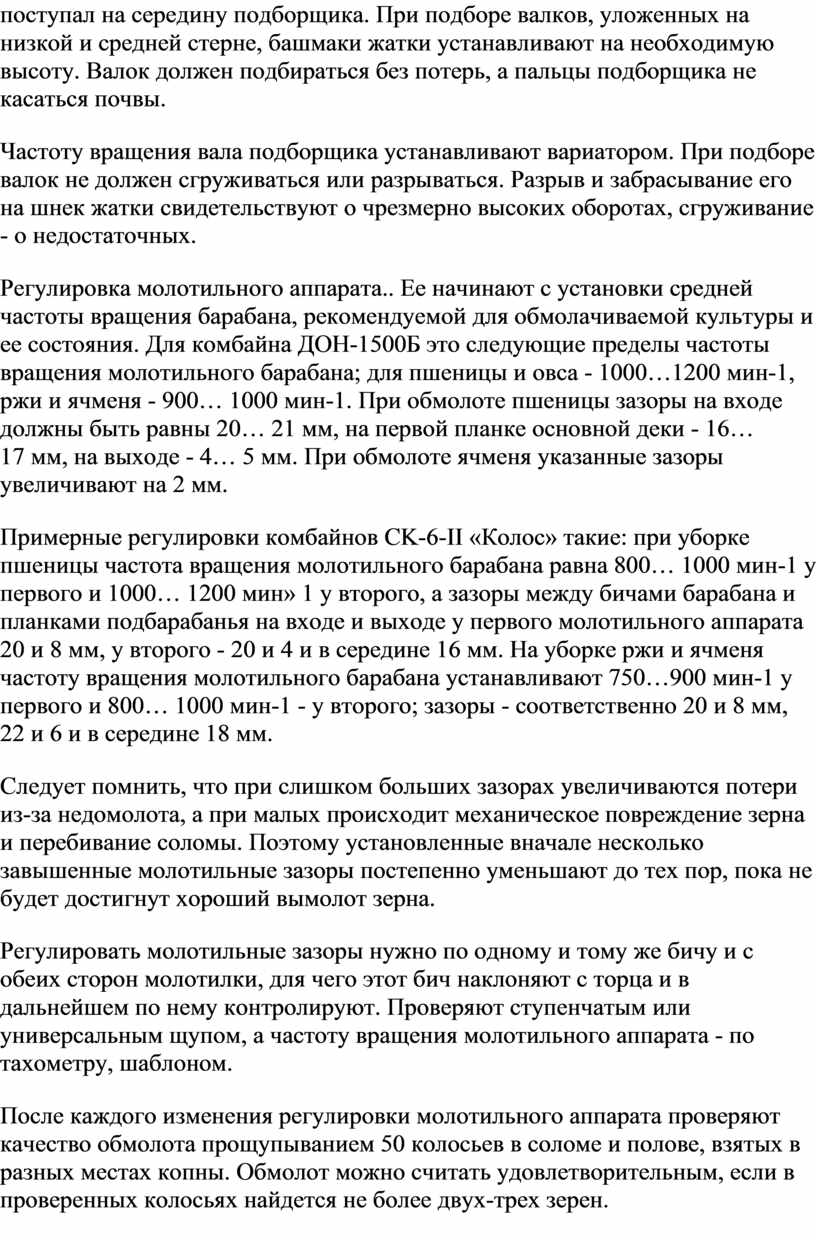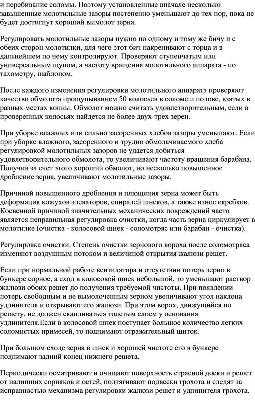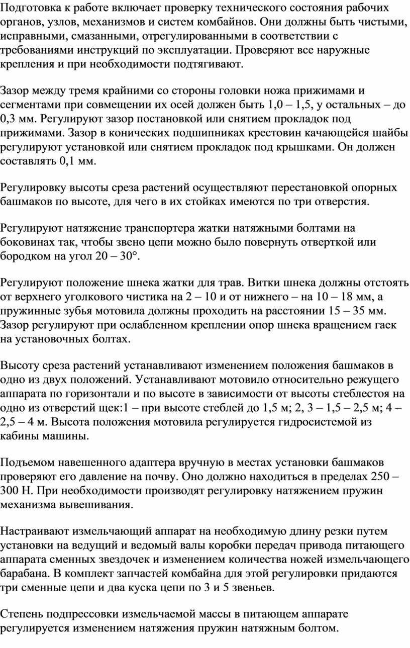 Проверяют и регулируют узлы и механизмы двигателя и шасси комбайна в соответствии в заводской инструкцией.
