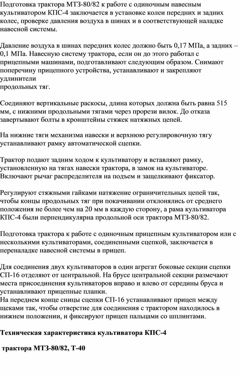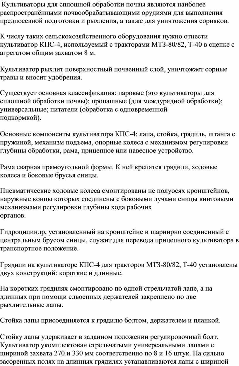 10. Выполнение механизированных сельскохозяйственных работ на машинно-тракторном агрегате для сплошной культивации.