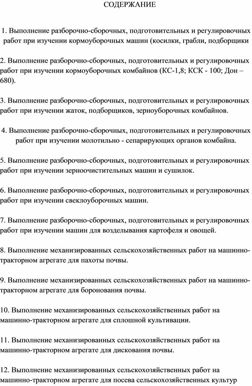 2. Выполнение разборочно-сборочных, подготовительных и регулировочных работ при изучении кормоуборочных комбайнов (КС-1,8; КСК - 100; Дон – 680).