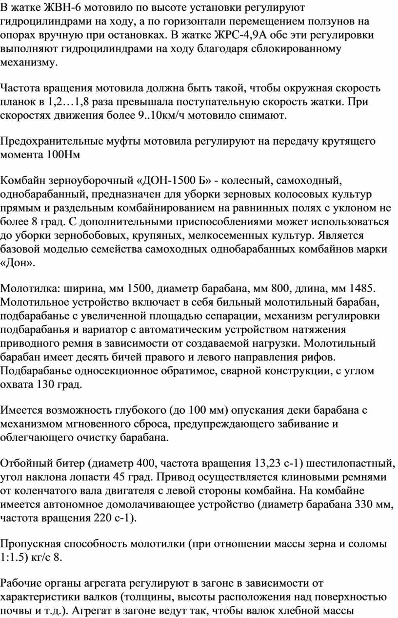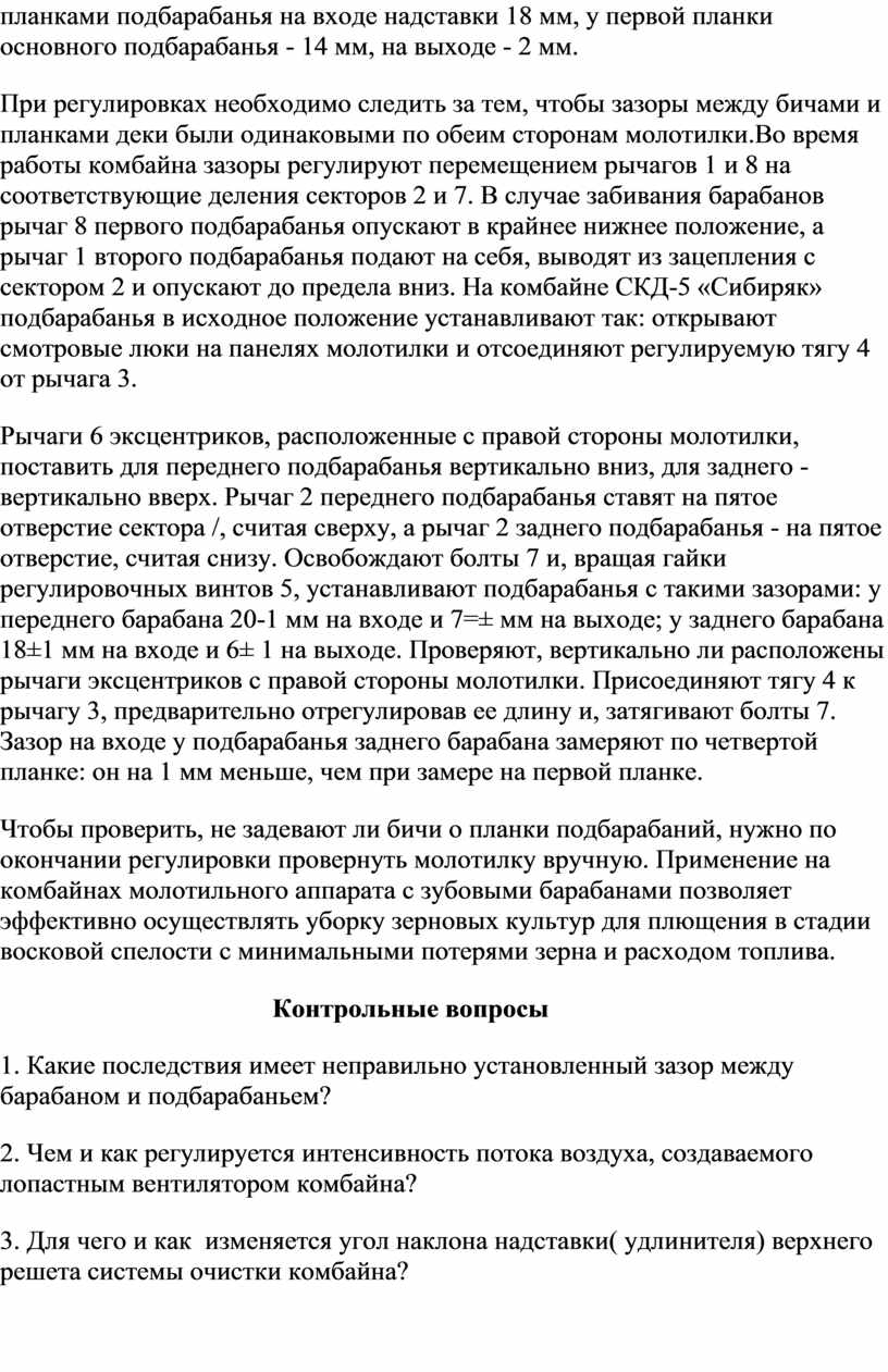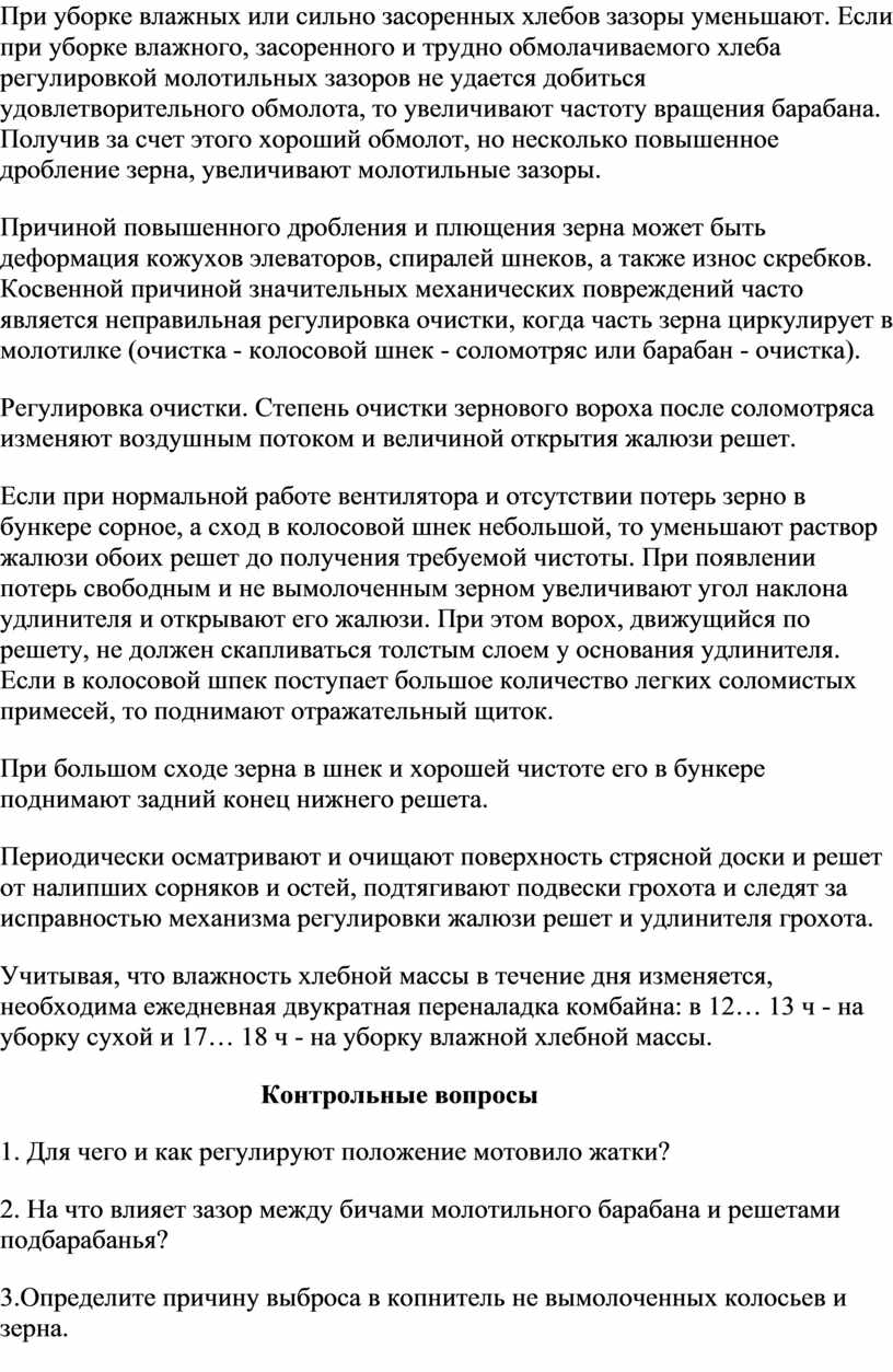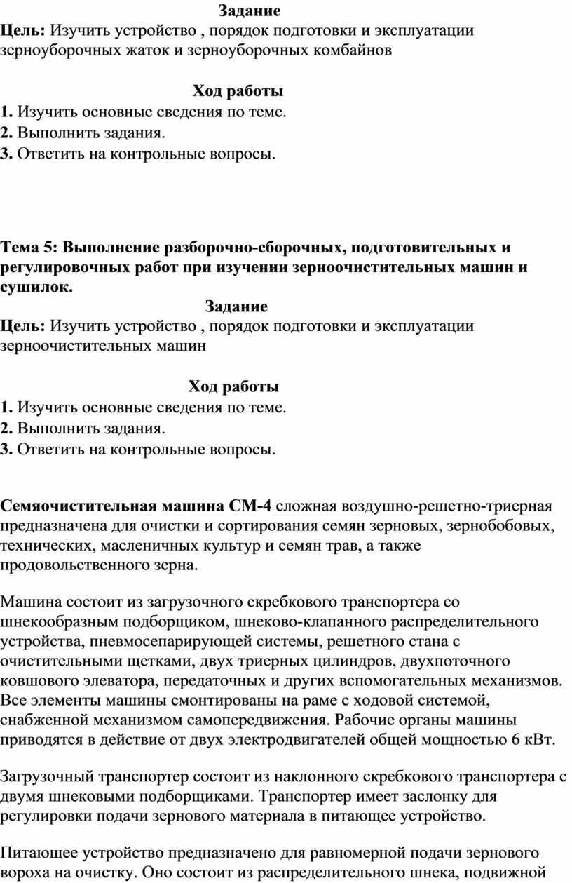 Тема 3: Выполнение разборочно-сборочных, подготовительных и регулировочных работ при изучении жаток, подборщиков, зерноуборочных комбайнов.