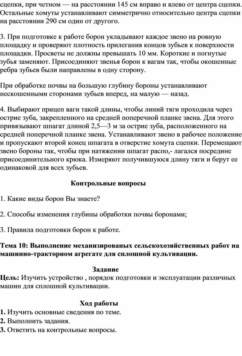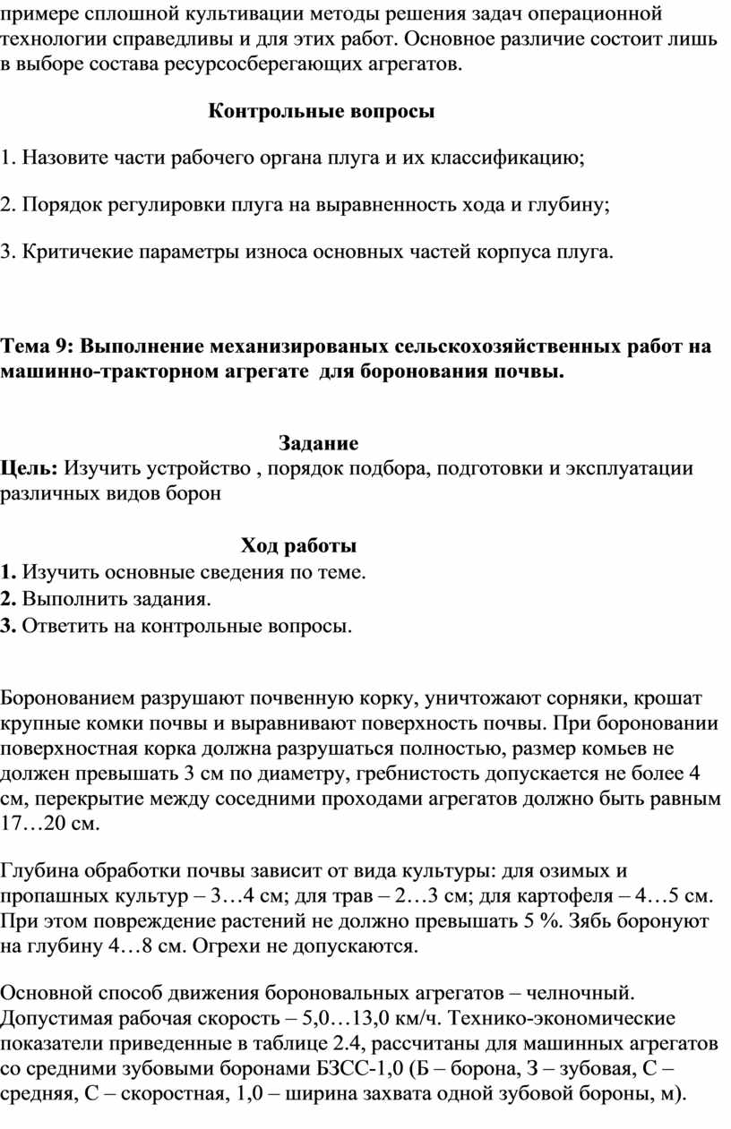9. Выполнение механизированных сельскохозяйственных работ на машинно-тракторном агрегате для боронования почвы.