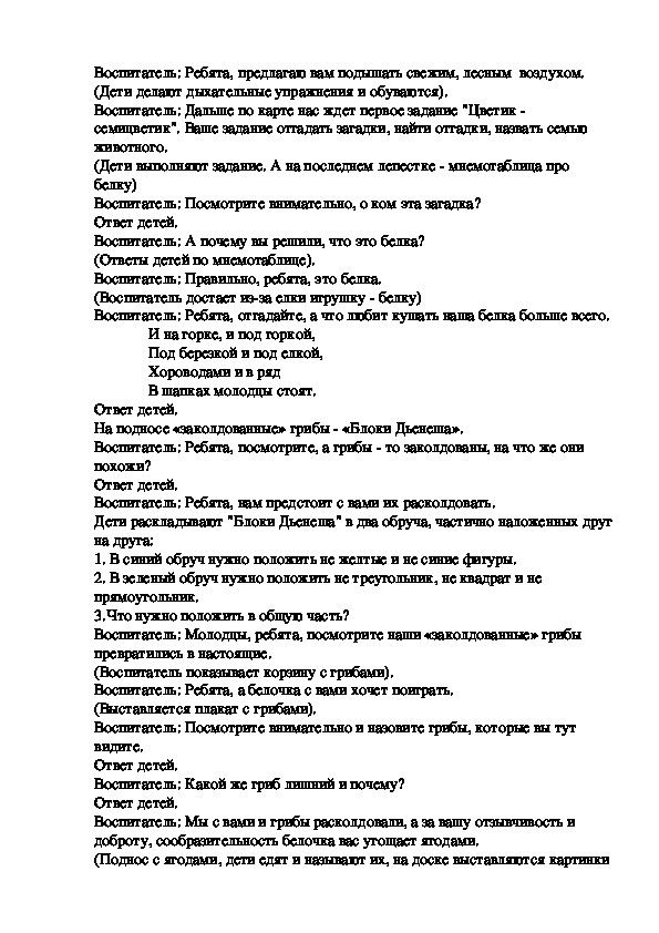 Воспитатель: Мы с вами и грибы расколдовали, а за вашу отзывчивость и