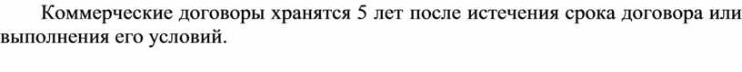 Коммерческие договоры хранятся 5 лет после истечения срока договора или выполнения его условий.