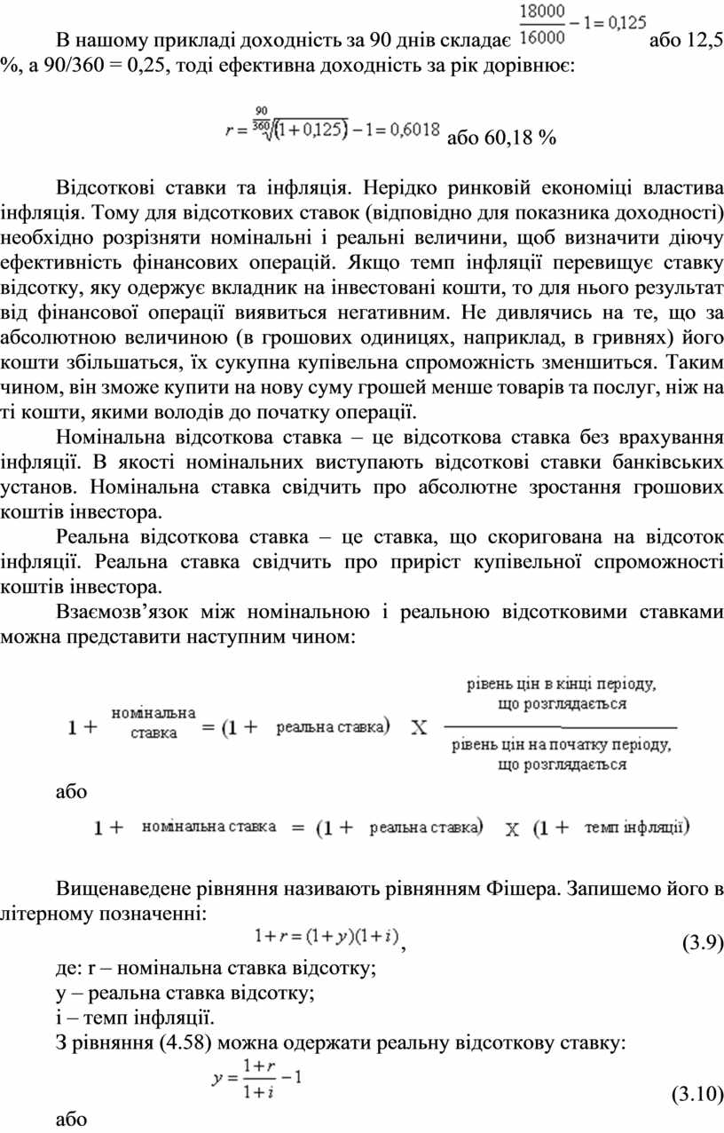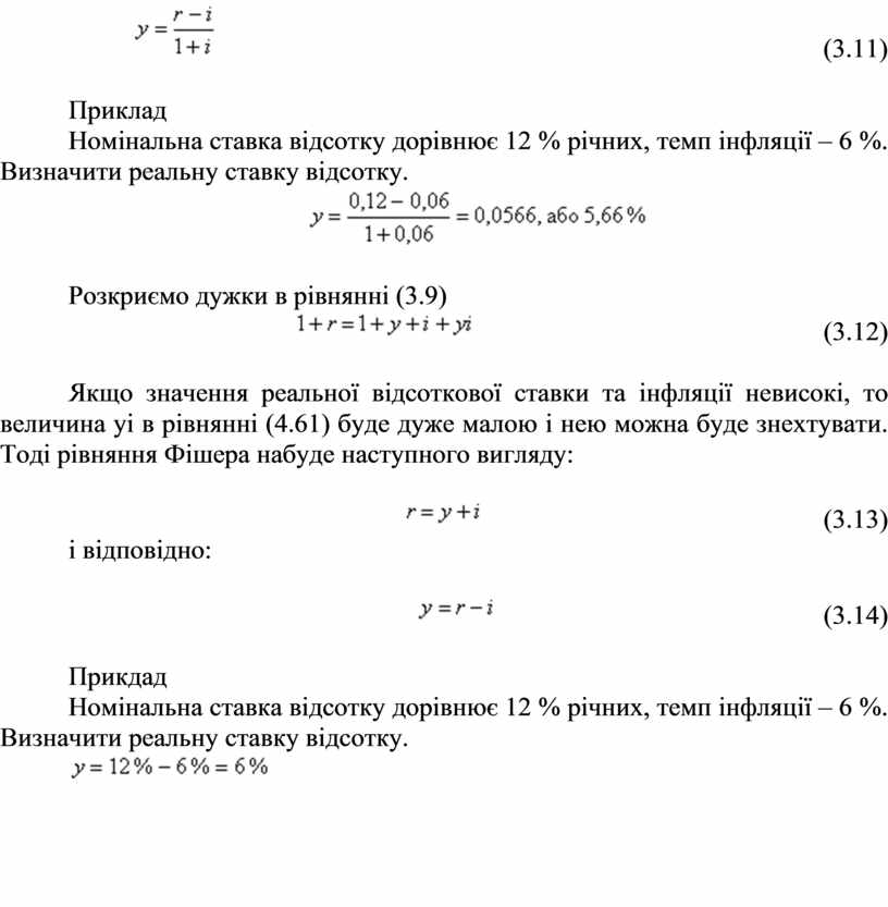 З рівняння (4.58) можна одержати реальну відсоткову ставку: