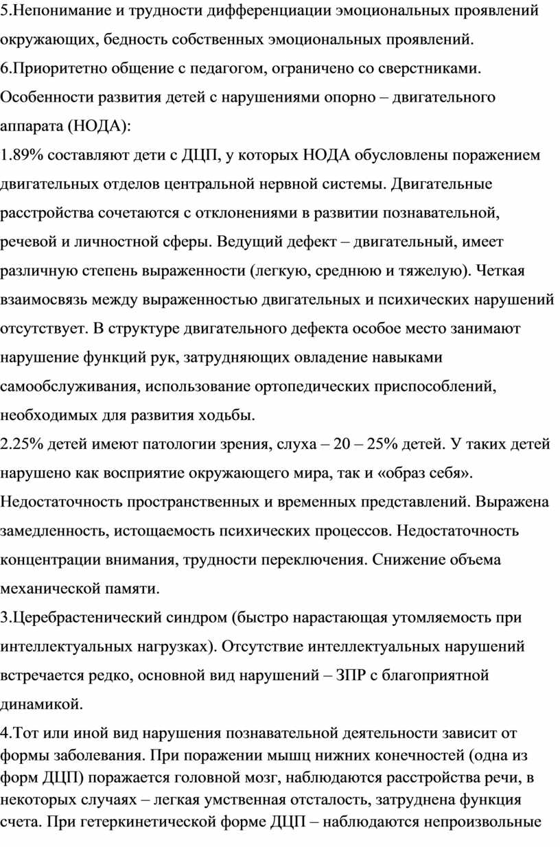 6.Приоритетно общение с педагогом, ограничено со сверстниками. Особенности развития детей с нарушениями опорно – двигательного аппарата (НОДА):
