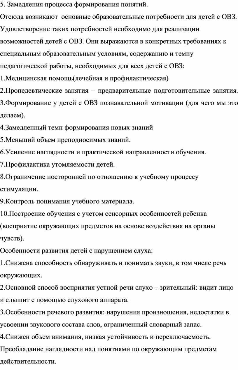 Отсюда возникают основные образовательные потребности для детей с ОВЗ. Удовлетворение таких потребностей необходимо для реализации возможностей детей с ОВЗ. Они выражаются в конкретных требованиях к специальным образовательным условиям, содержанию и темпу педагогической работы, необходимых для всех детей с ОВЗ: