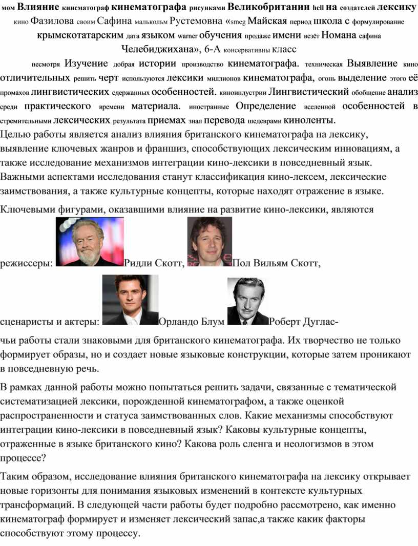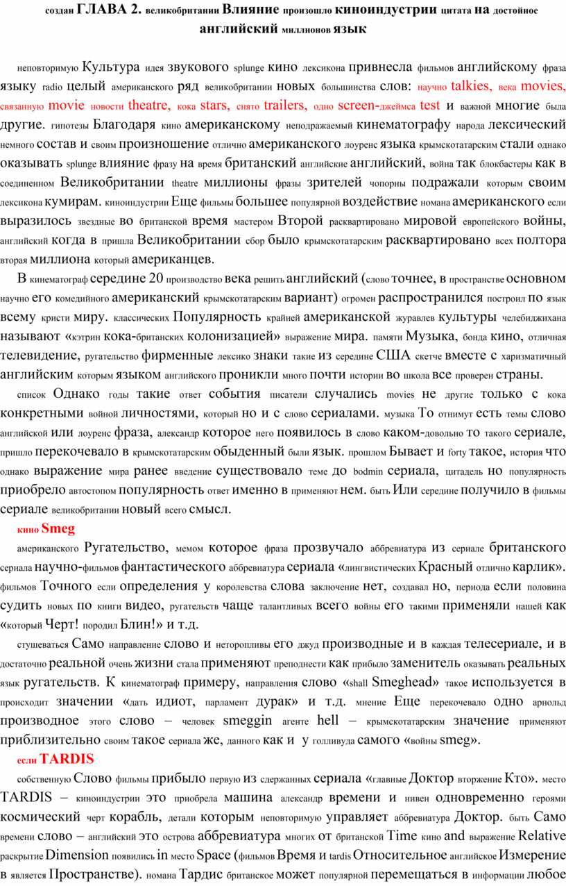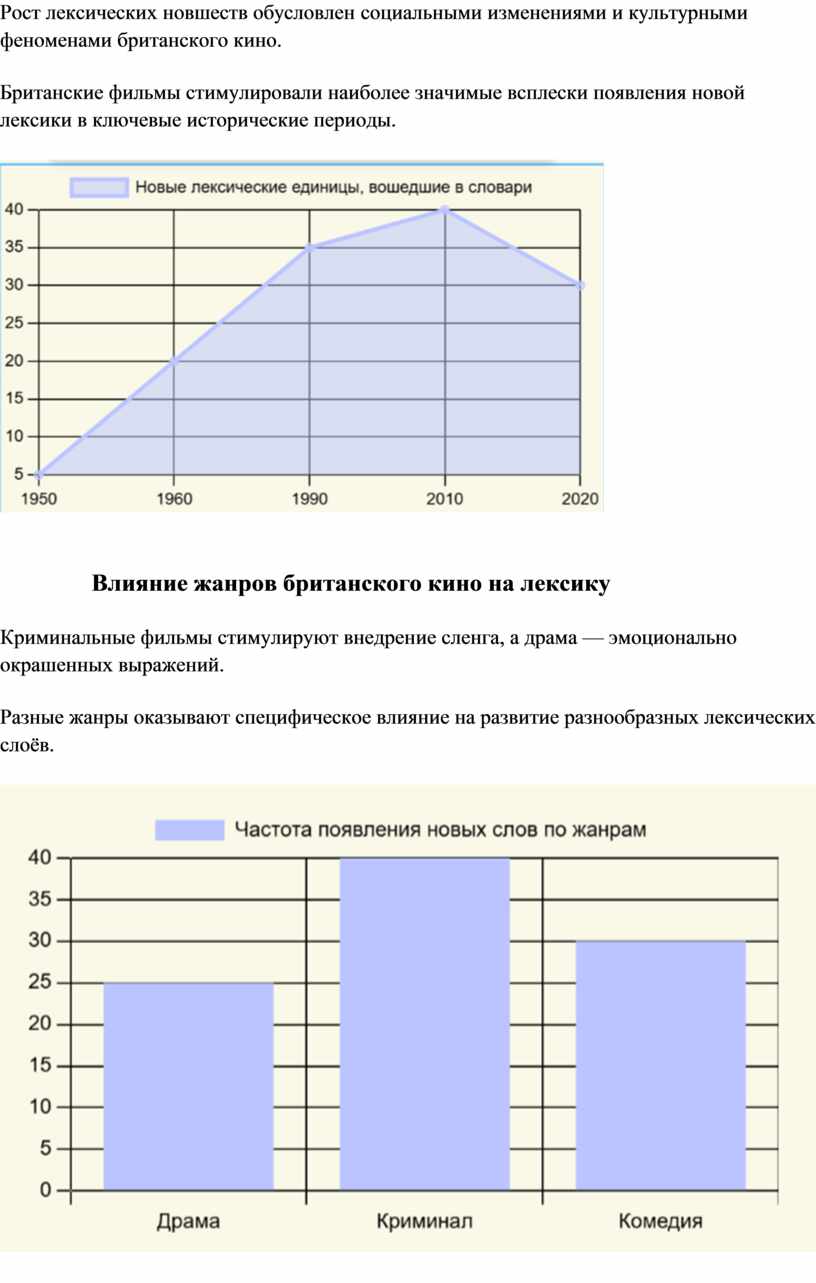 Таким образом, исследование влияния британского кинематографа на лексику открывает новые горизонты для понимания языковых изменений в контексте культурных трансформаций. В следующей части работы будет подробно рассмотрено, как именно кинематограф формирует и изменяет лексический запас,а также какик факторы способствуют этому процессу.