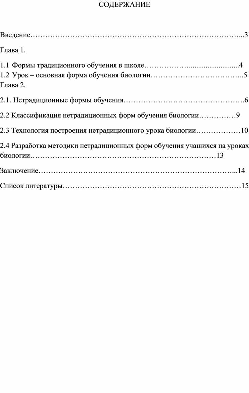 2.2 Классификация нетрадиционных форм обучения биологии……………9