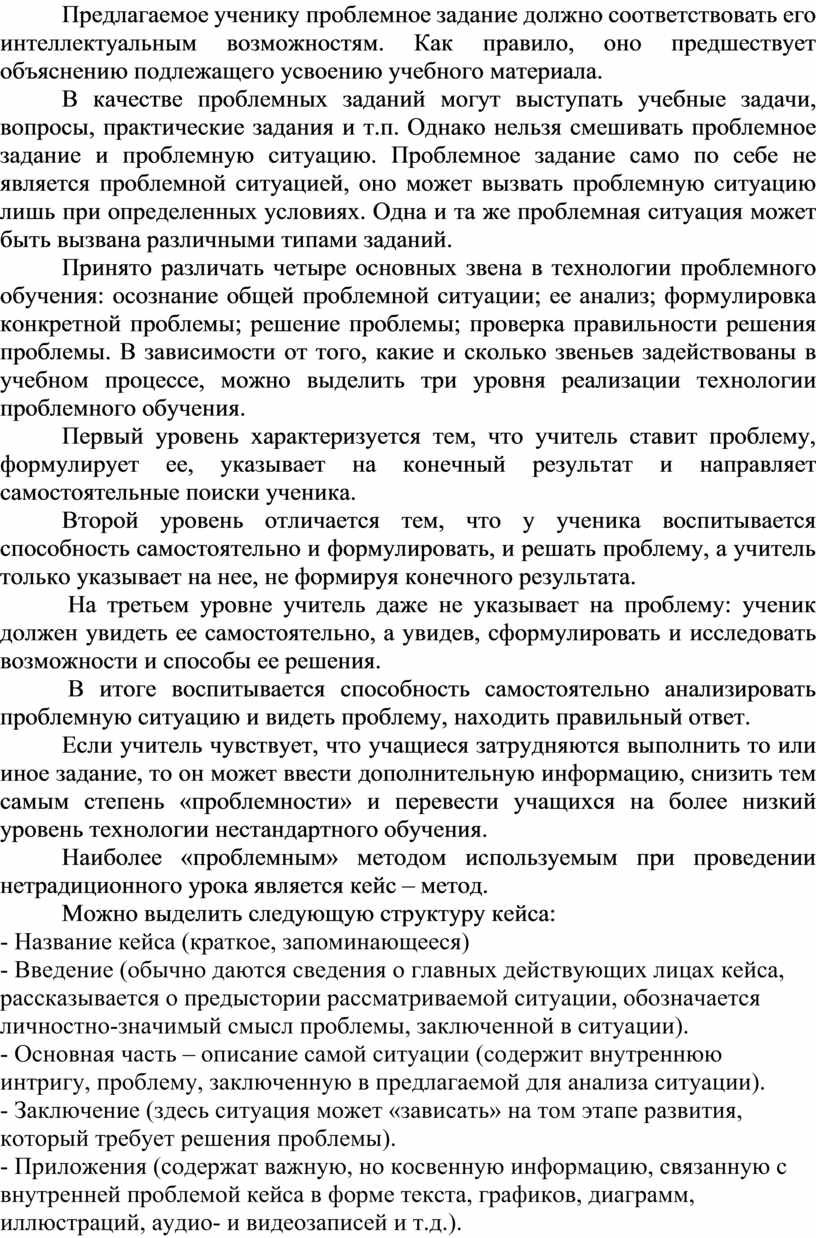 Наиболее «проблемным» методом используемым при проведении нетрадиционного урока является кейс – метод.