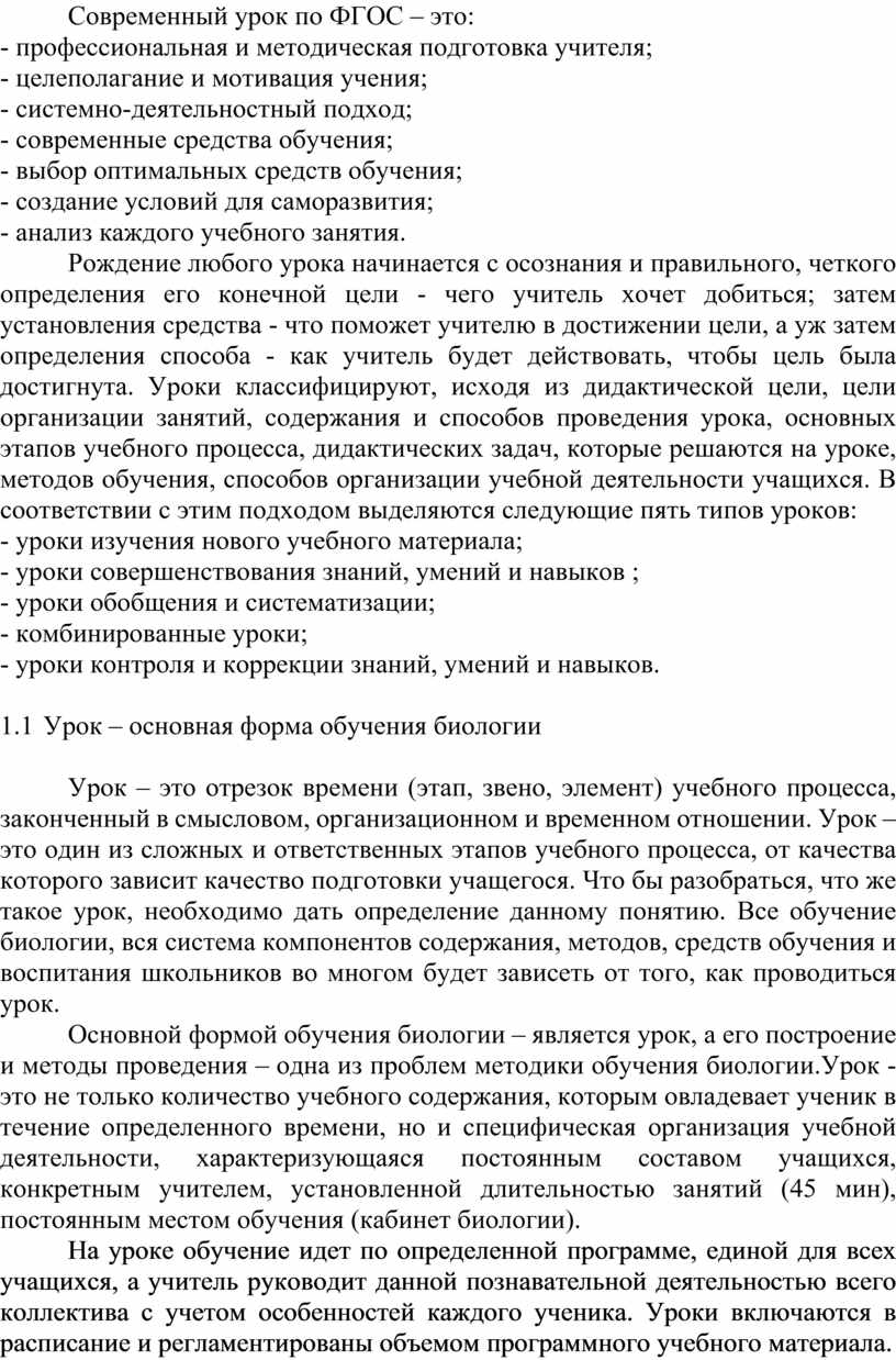 1.1 Урок – основная форма обучения биологии