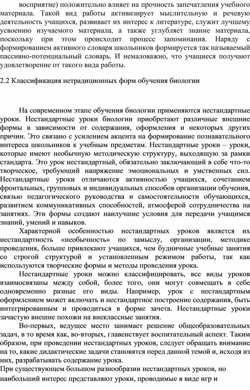 2.2 Классификация нетрадиционных форм обучения биологии