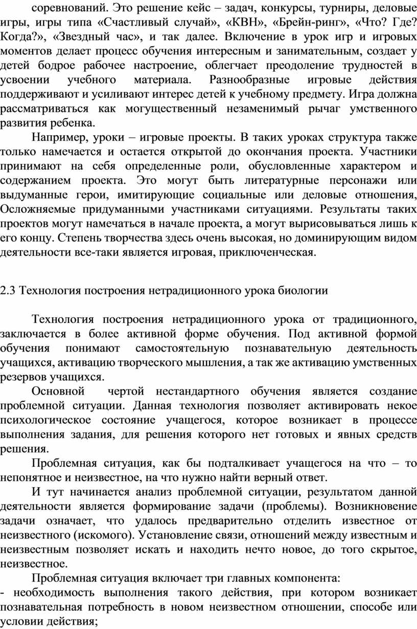 2.3 Технология построения нетрадиционного урока биологии