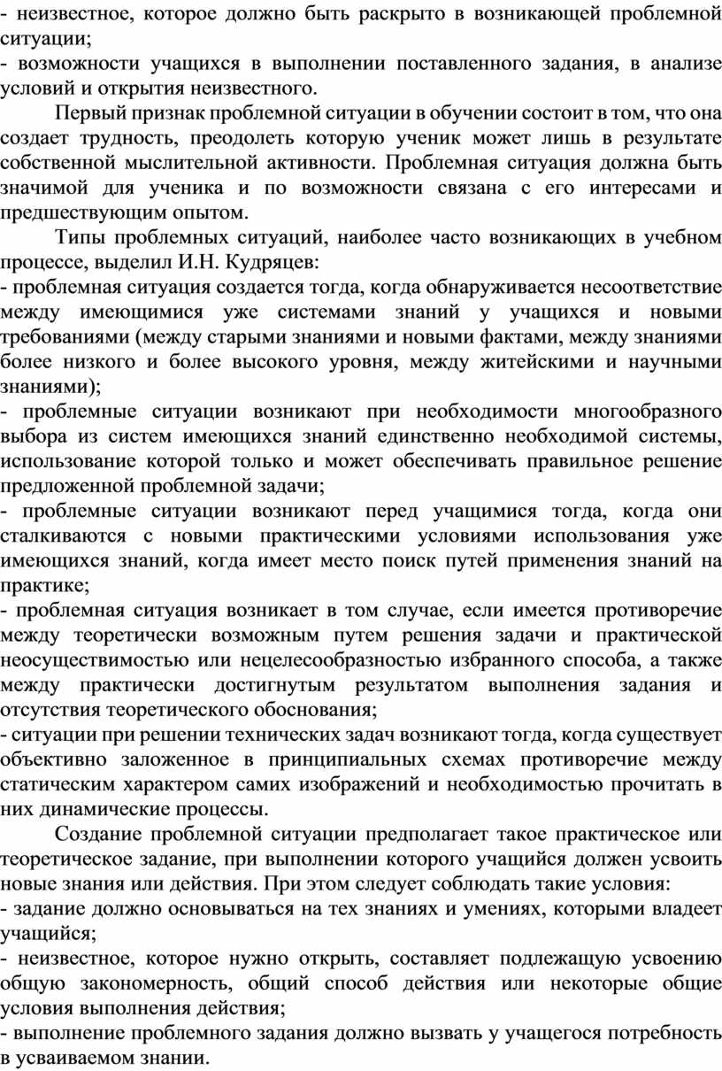 Типы проблемных ситуаций, наиболее часто возникающих в учебном процессе, выделил И.Н. Кудряцев: