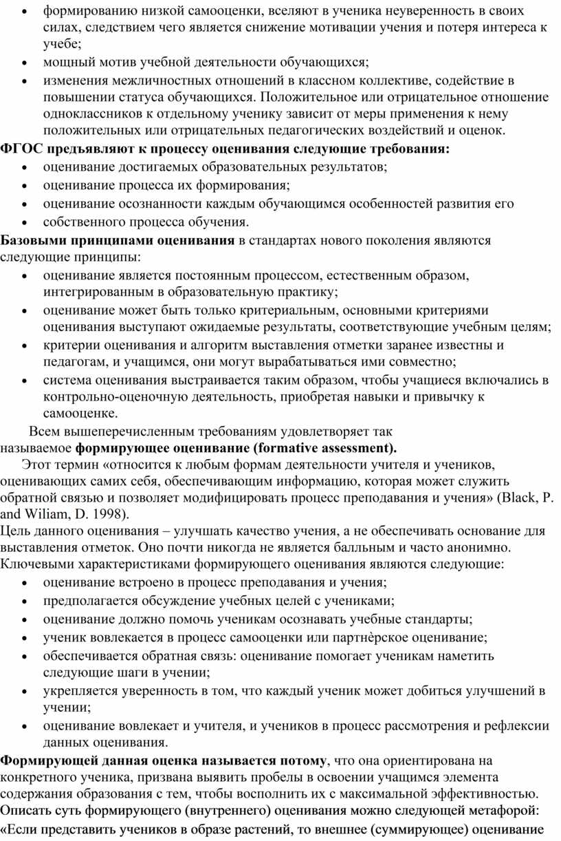 Всем вышеперечисленным требованиям удовлетворяет так называемое формирующее оценивание (formative assessment).
