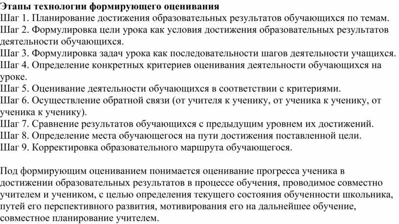 Формирующая оценка – «обратная связь» для учащихся, позволяющая им уяснить, какие шаги им необходимо предпринять для улучшения своих результатов.