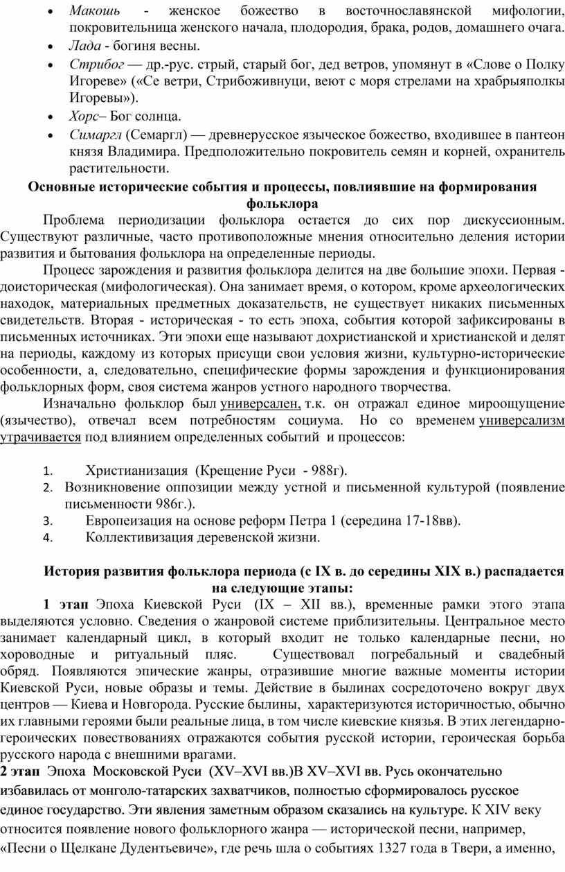 Основные исторические события и процессы, повлиявшие на формирования фольклора