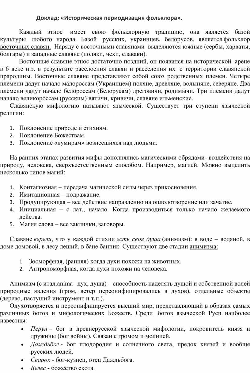 Доклад: «Историческая периодизация фольклора».