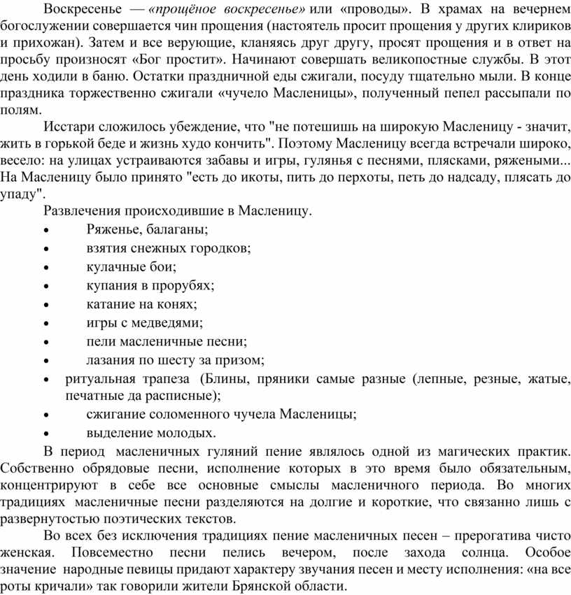 Доклад: «Масленичные обряды и песни».