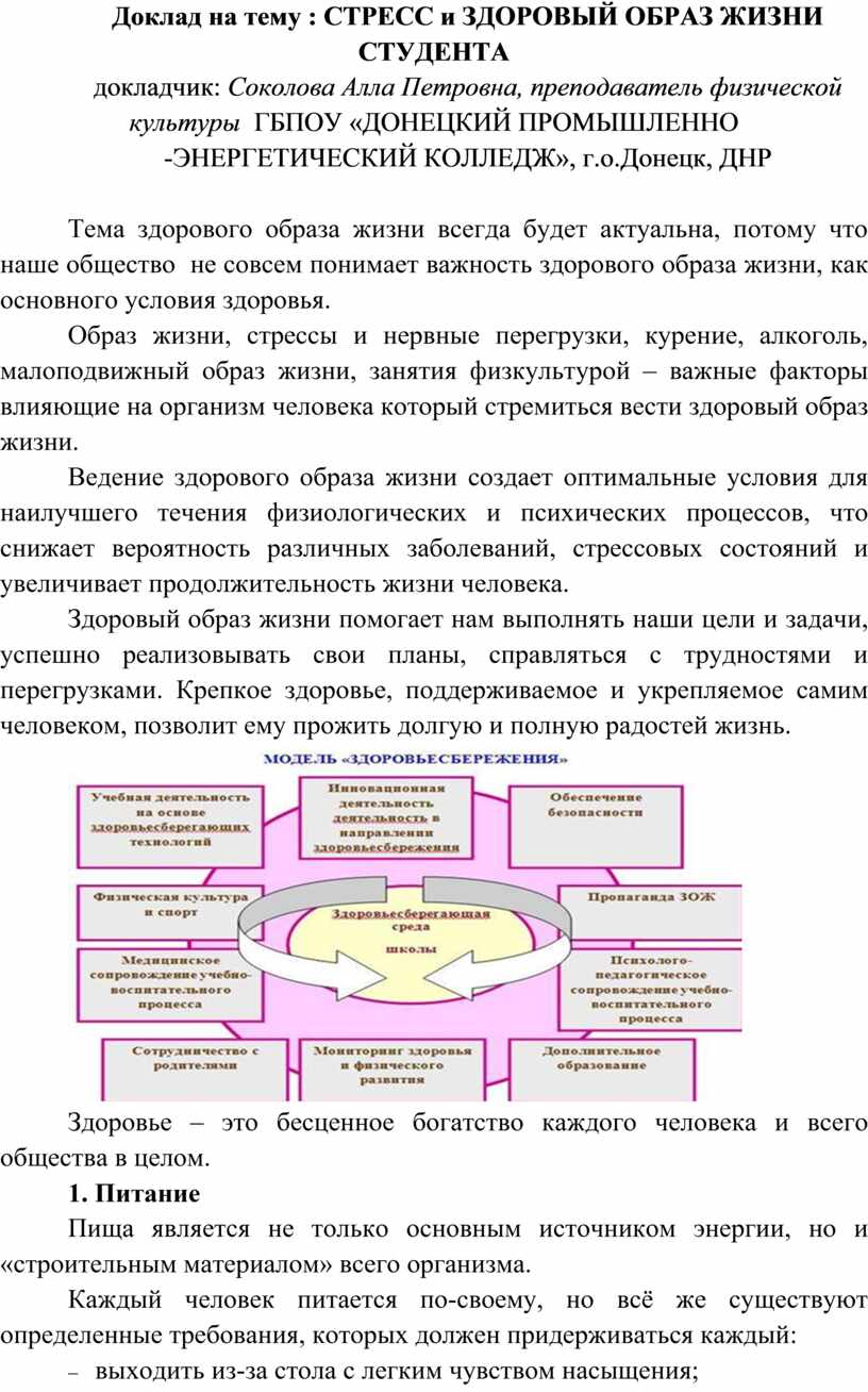 Доклад на тему : СТРЕСС и ЗДОРОВЫЙ ОБРАЗ ЖИЗНИ СТУДЕНТА