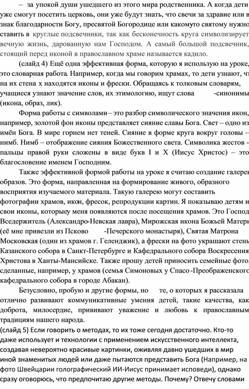 Безусловно, сегодня перед учителем огромный выбор форм и методов преподавания основ православной культуры, но я расскажу о наиболее эффективных, которые применяю на своих уроках.