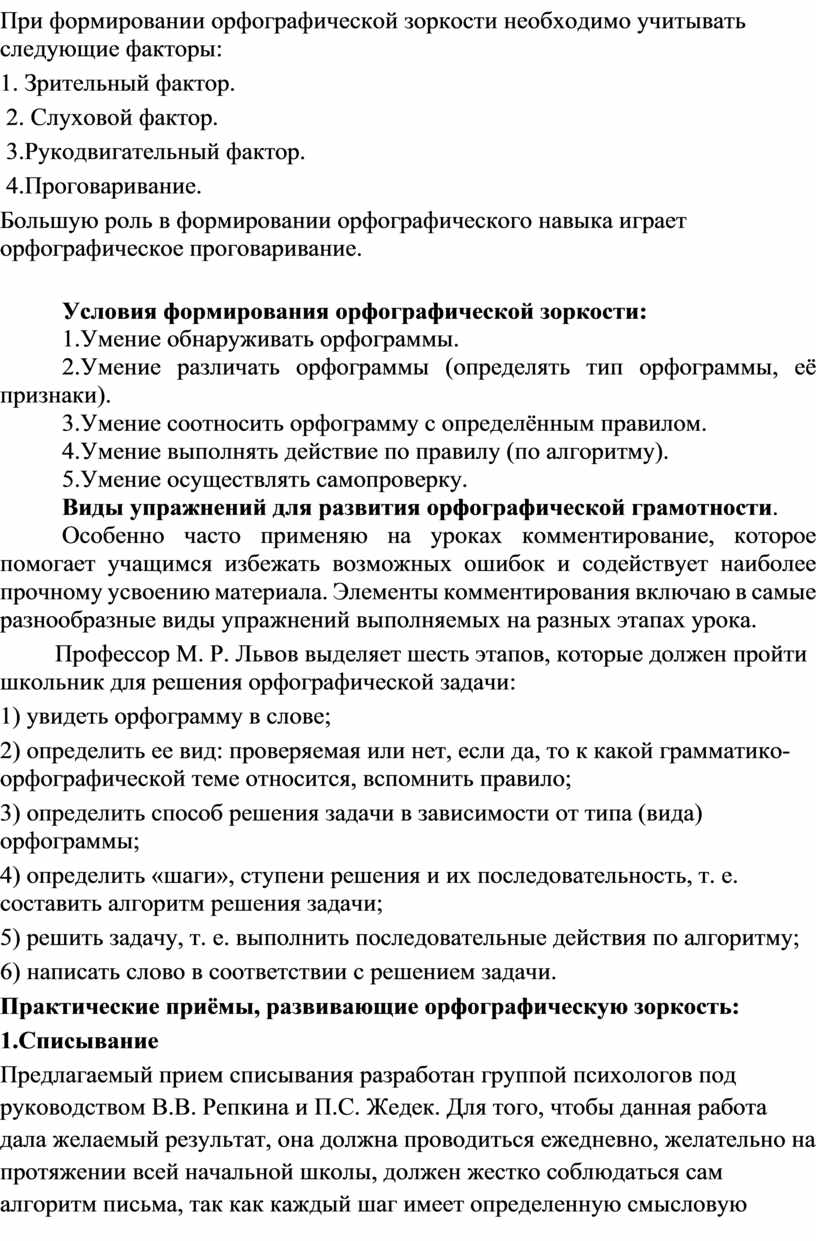 При формировании орфографической зоркости необходимо учитывать следующие факторы: