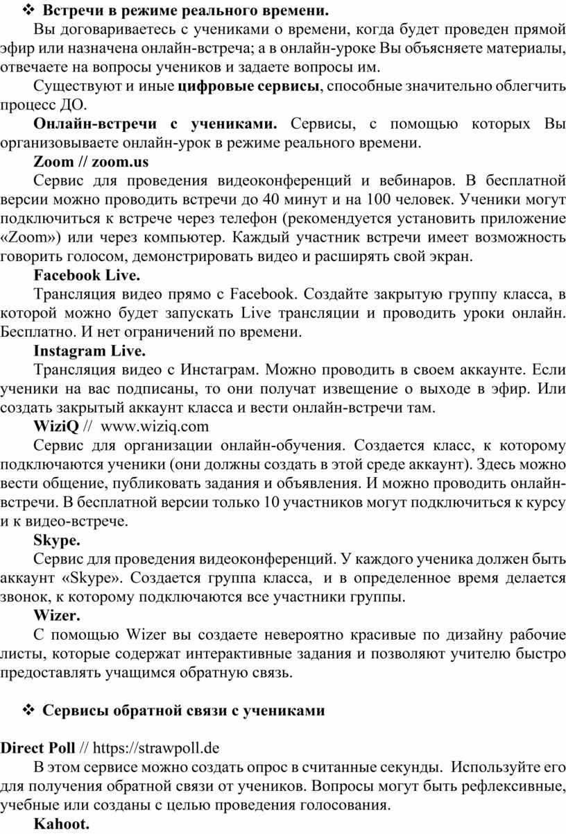 Онлайн-встречи с учениками. Сервисы, с помощью которых Вы организовываете онлайн-урок в режиме реального времени.