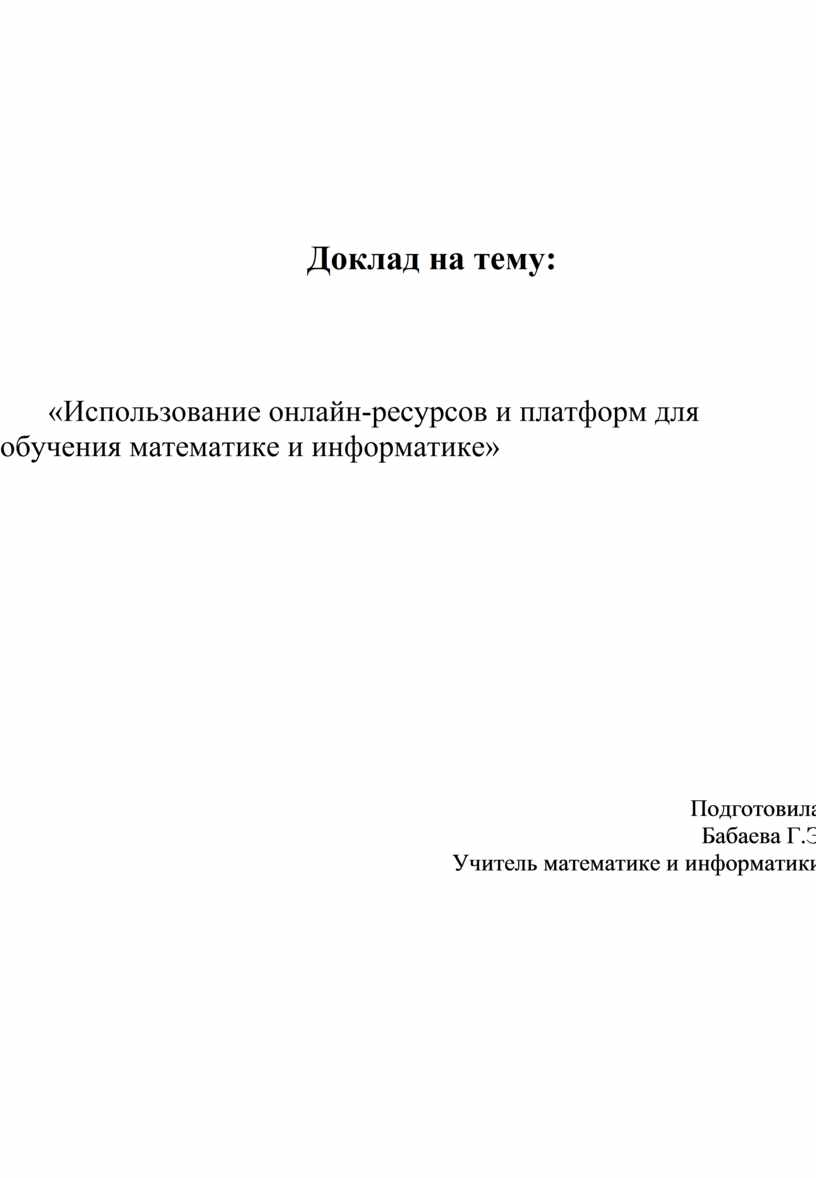 «Использование онлайн-ресурсов и платформ для обучения математике и информатике»