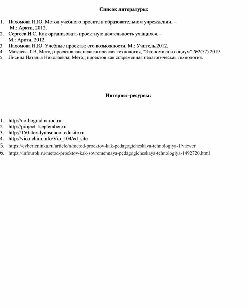 6. https://infourok.ru/metod-proektov-kak-sovremennaya-pedagogicheskaya-tehnologiya-1492720.html