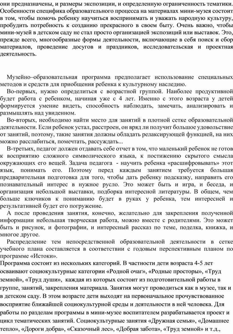 Музейно–образовательная программа предполагает использование специальных методов и средств для приобщения ребенка к культурному наследию.