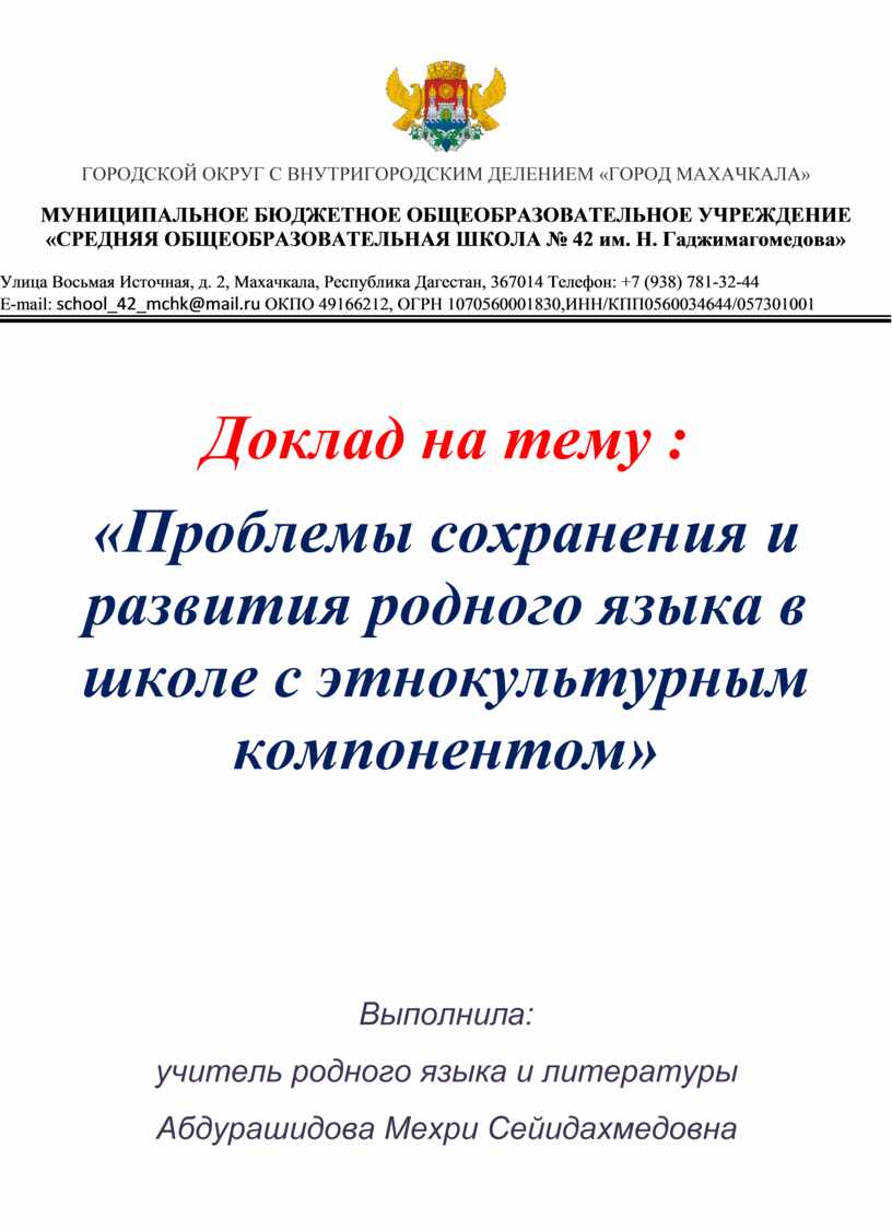 E-mail: school_42_mchk@mail.ru ОКПО 49166212, ОГРН 1070560001830,ИНН/КПП0560034644/057301001