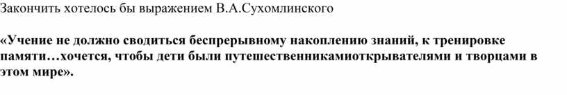 Закончить хотелось бы выражением В.А.Сухомлинского