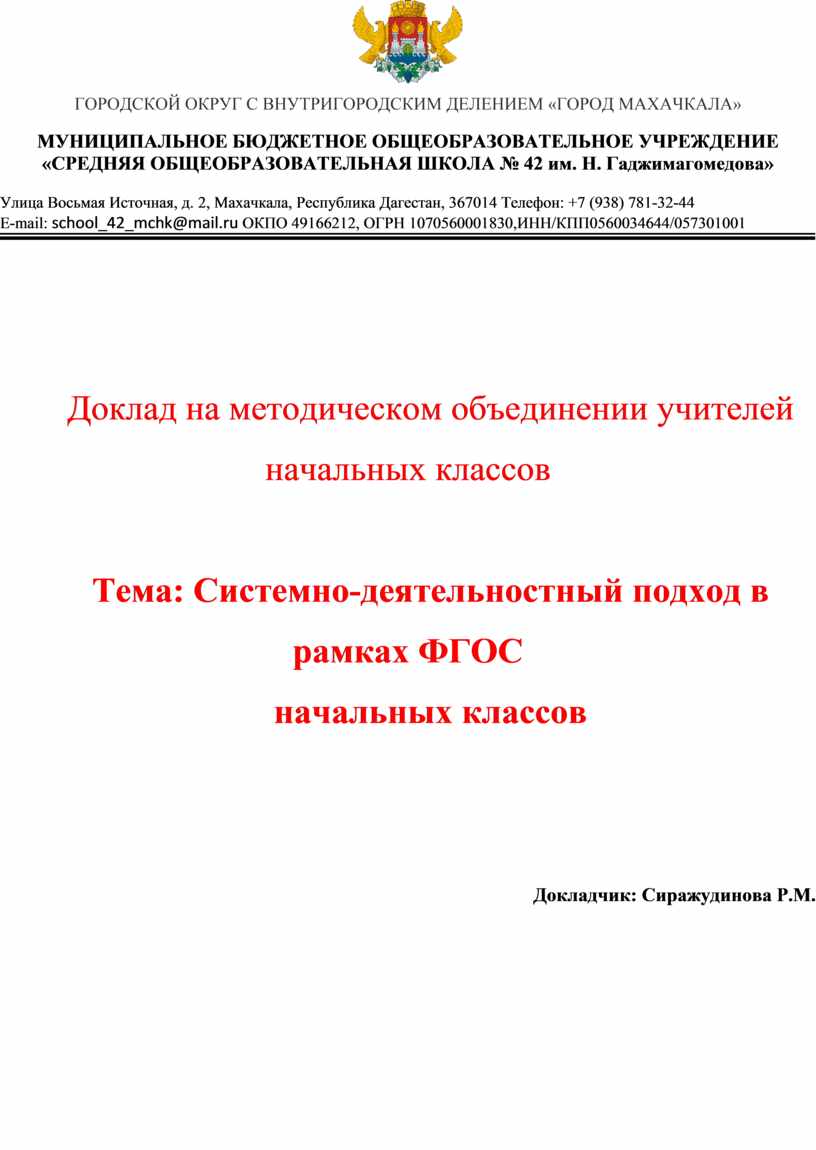 E-mail: school_42_mchk@mail.ru ОКПО 49166212, ОГРН 1070560001830,ИНН/КПП0560034644/057301001