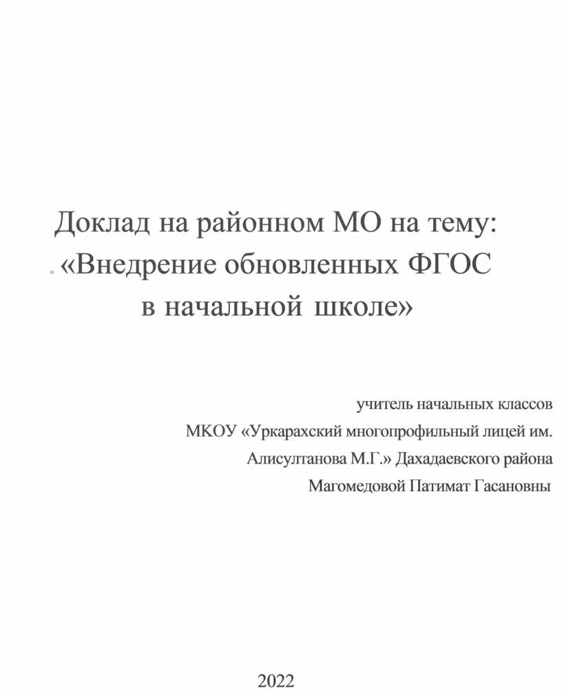 учитель начальных классов MKOУ «Уркарахский многопрофильный лицей им. Алисултанова М.Г.» Дахадаевского района